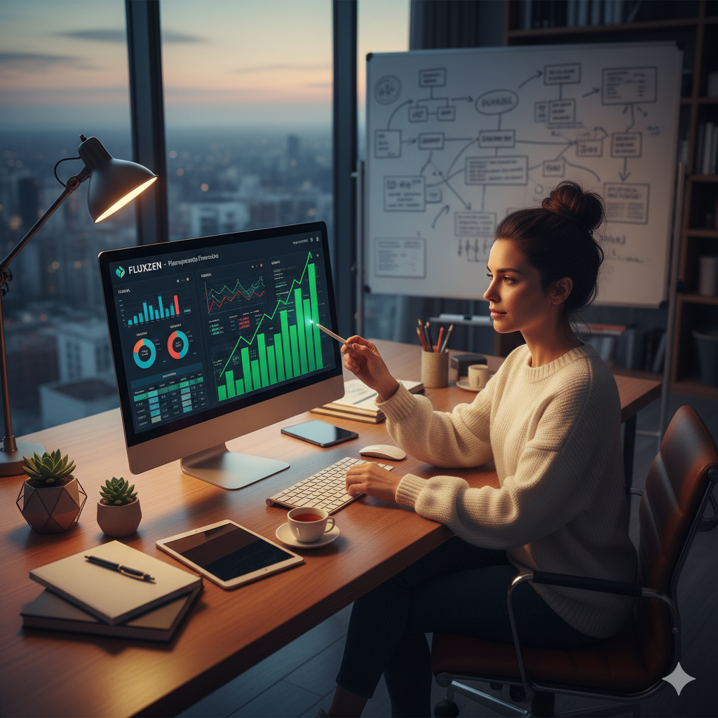 É aí que entram sistemas automatizados de gestão financeira, como o Fluxzen — criados especialmente para empreendedores, pequenas empresas e MEIs.